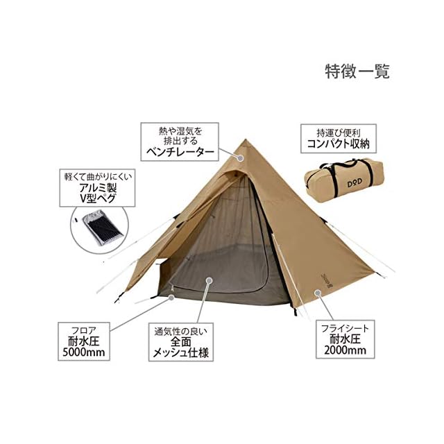商品名:DOD(ディーオーディー) ワンポールテントM 5人用 【収納コンパクト&かんたん設営】 T5-47-TN