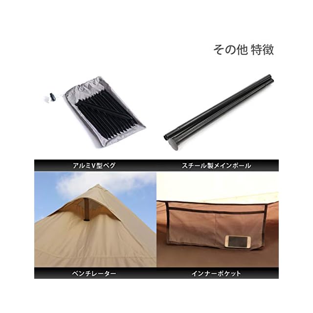 材質:フライシート、フロア:75D ポリエステル (PUコーティング)、ポール:スチール