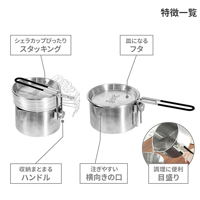商品名:DOD(ディーオーディー) シェラケトル ウサシェラにピッタリ収まる 広口 収納 ステンレス コンパクト スタッキング ソロキャンプ SK1-067-SL