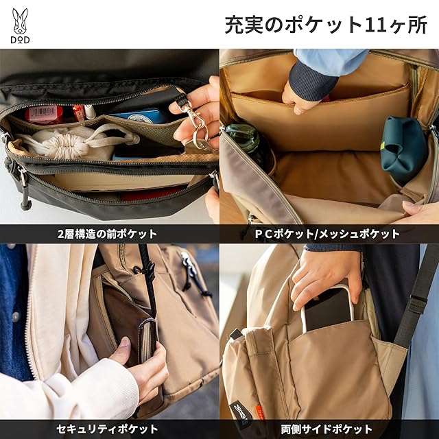 DOD(ディーオーディー) ナニゲニーリュック 軽量 撥水 11ポケット BA132-BG