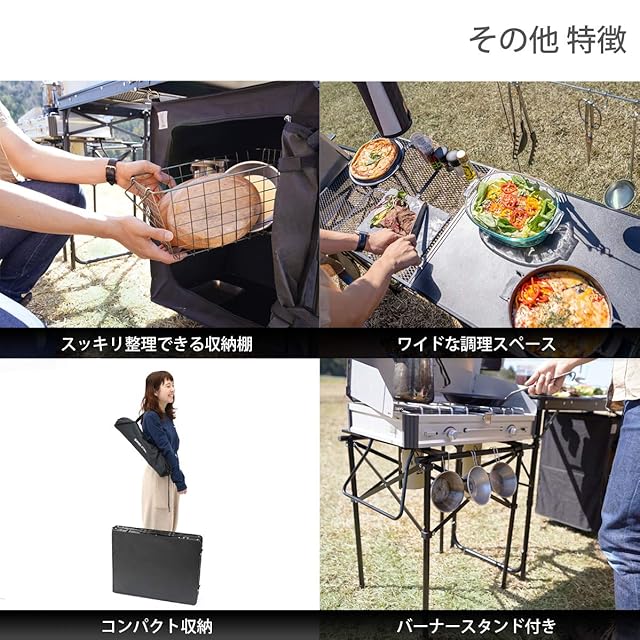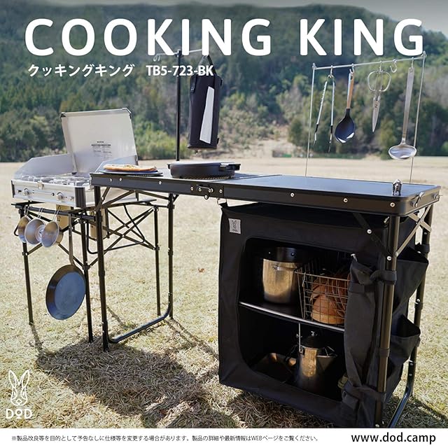 DOD(ディーオーディー) クッキングキング オールインワンキッチン 中 耐熱メッシュ 収納棚付き TB5-723-BK
