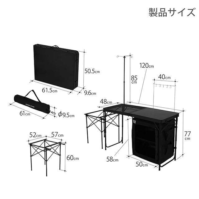 収納サイズ: 本体:(約)W120×D48×H58/77cm バーナースタンド:(約)W57×D52×H60cm