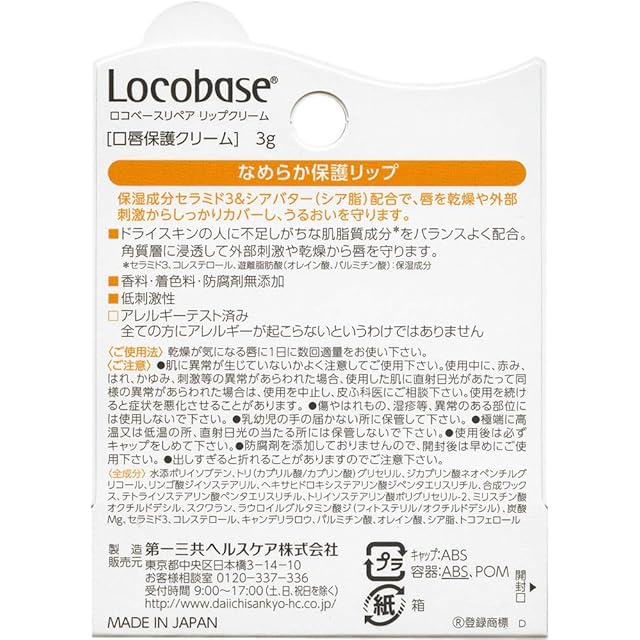 商品名:ロコベースリペアリップクリーム 3g