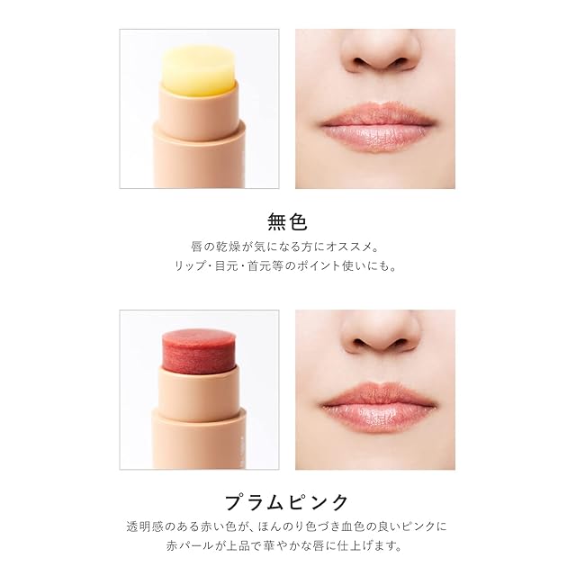 うるおいヴェール:ミツロウとカルナウバワックス*が唇に膜を作り、うるおいのあるきめの整った唇に導きます。 *カルナウバロウ(整肌成分)