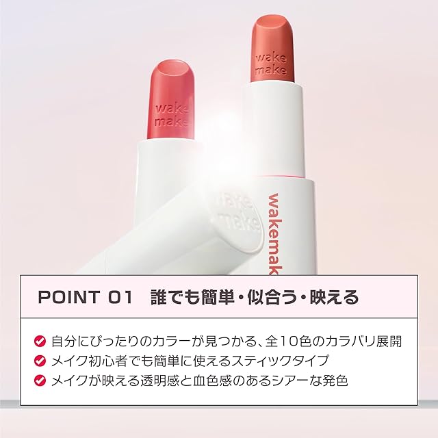 WAKEMAKE(ウェイクメイク)公式「ヘルシーグロウバームスティック」は、素の唇のように自然で健康的な血色感を叶えるリップ&チーク兼用の万能スティックです。透明感と血色感のあるシアー発色で、誰でも簡単に似合うカラーが見つかり、メイク初心者でも使いやすいなめらかな塗り心地。ラズベリーシードオイル※を配合し、乾燥や荒れを防ぎながら保湿感のあるリップに仕上げます。さらに10色の豊富なカラーバリエーションで、その日の気分やシーンに合わせて選べるのも魅力。カジュアルからフォーマルまで幅広く活躍する韓国コスメの人気アイテムです。 ※ラズベリー種子油(保湿成分)