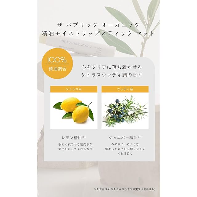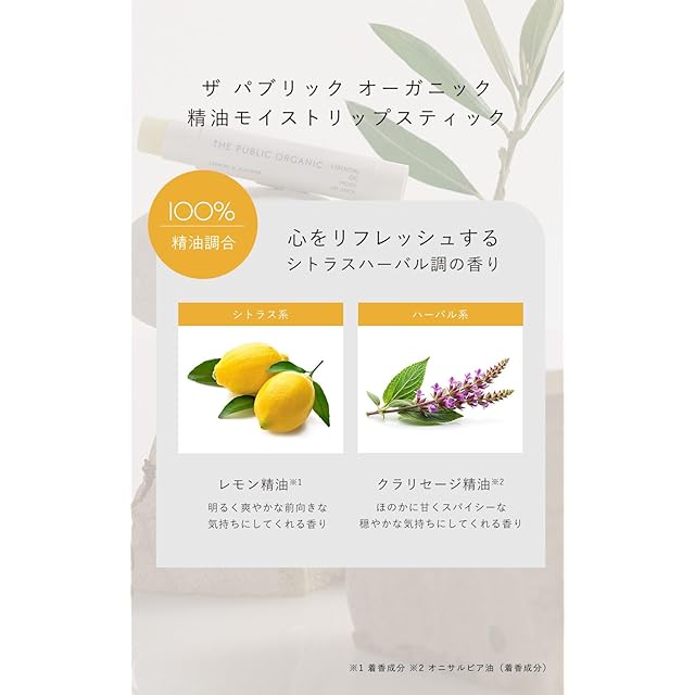 商品名:ザ パブリック オーガニック 精油 保湿 リップ 100%天然由来 リップクリーム シアバター 日本製 3.3g (精油モイストリップスティック)