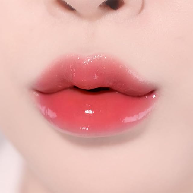 明るく透明なカラーと光沢のある ぷるぷるつやつやリップを演出 #果肉たっぷりシロップのように透明で 光沢が溢れ出し明るく血色感のあるふっくら唇に