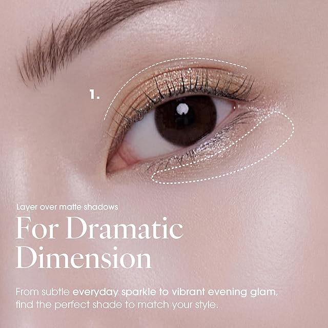落ちない輝き: つけた部分にとどまる、イキイキとしたきらめきを楽しんでください。革新的なフォーミュラは、まぶたにシームレスに付着し、汚れることなく、クリーミーな粘度によりブレンドも簡単で、洗練された仕上がりを可能にします。