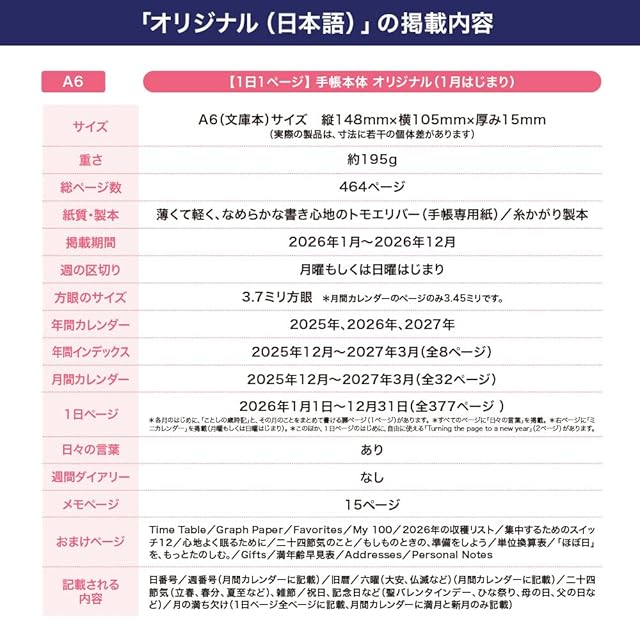ほぼ日手帳2026本体オリジナル[A6/1日1ページ/1月/月曜はじまり]