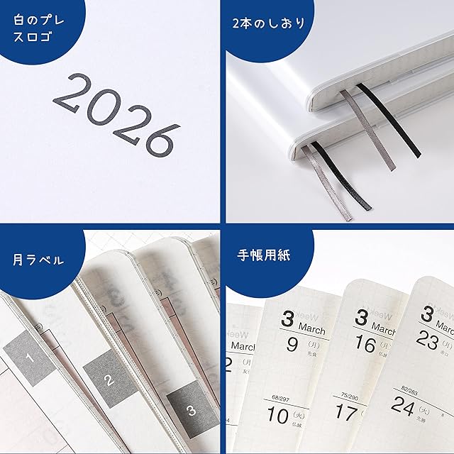 商品名:手帳 2026 A5 ウィークリー ダイアリー 月間ブロック PVC カバー 白色(2025年12月始まり)