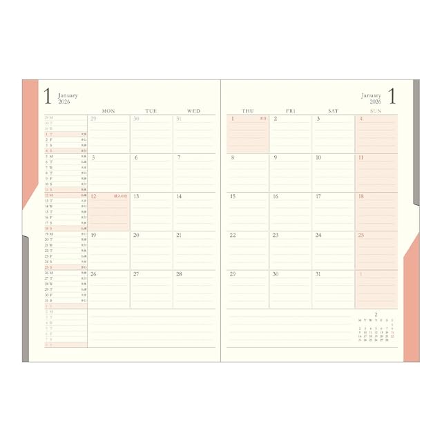 ミドリ ダブルスケジュール 手帳 2026年 B6 マンスリー マネー 青緑 22386006 (2025年10月始まり)