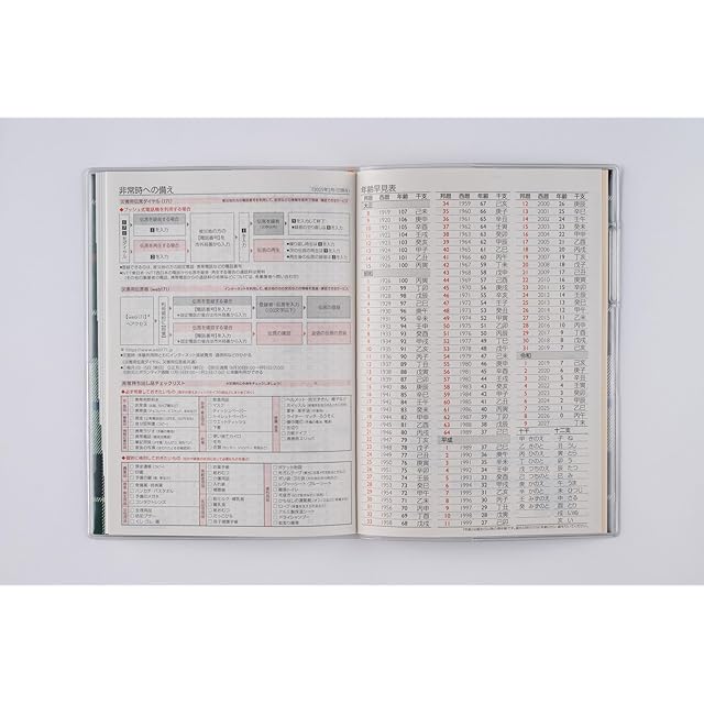 【商品詳細2】表紙タイプ:クリアカバー ●刷色:3色刷 ●ページ数:120頁 ●スペック:ペンホルダー,月別インデックス ●付録:年齢早見表,マイカレンダー,非常時への備え,アドレスメモ,方眼メモ,切り取りメモ ●別冊:なし