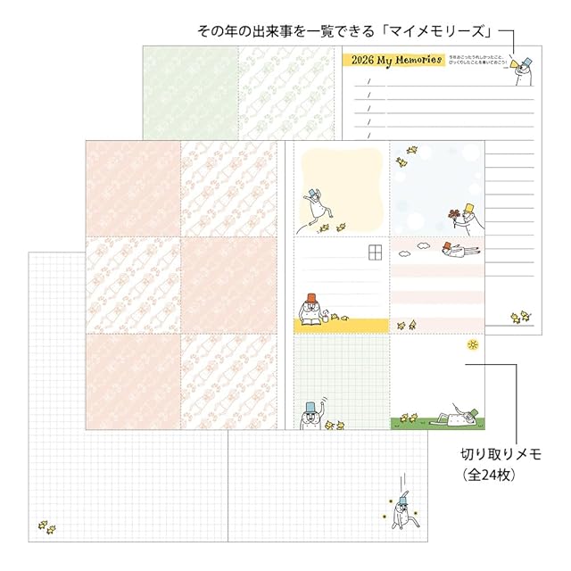 【付録】年間カレンダー、年間スケジュール、メモ、切り取りメモ、マイメモリーズ、パーソナルページ