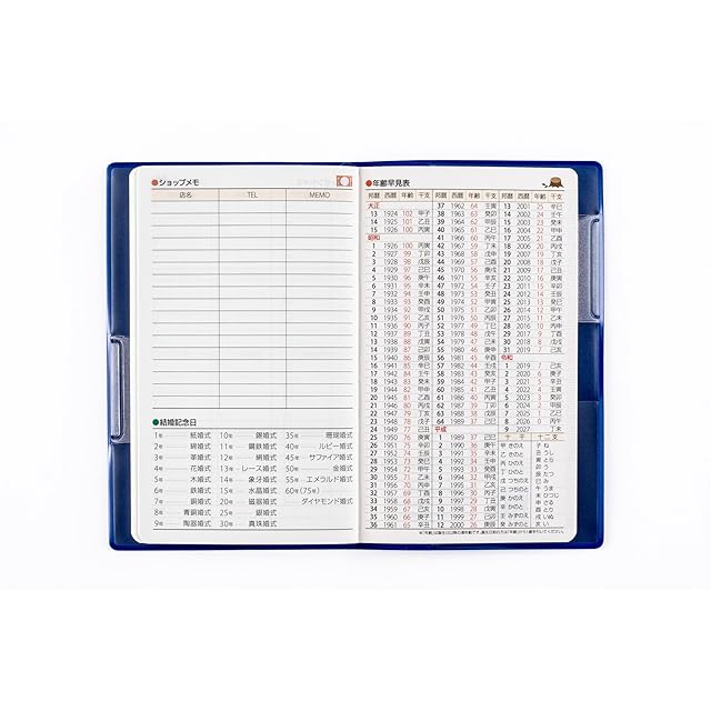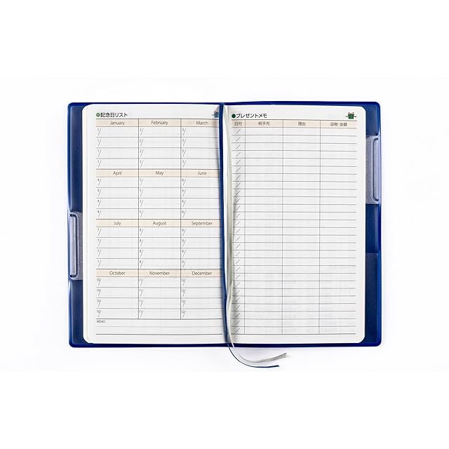 【商品詳細2】表紙タイプ:皮革調 ●刷色:2色刷 ●ページ数:192頁 ●スペック:ダブルペンホルダー ●付録:年齢早見表,マイカレンダー,非常時への備え,ID・パスワードリスト,記念日リスト,プレゼントメモ,ショップメモ,クレジット控え,方眼メモ,切り取りメモ ●別冊:なし