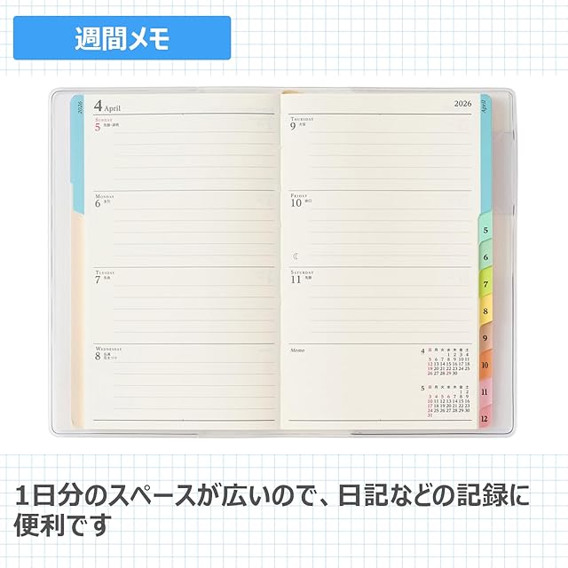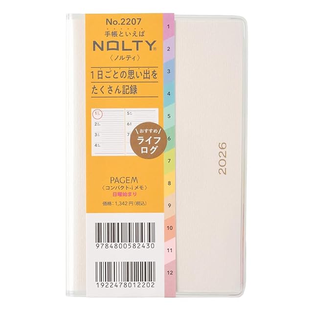 能率 ペイジェム 手帳 2026年 ウィークリー コンパクト メモ ホワイト 2207 (2025年 12月始まり)