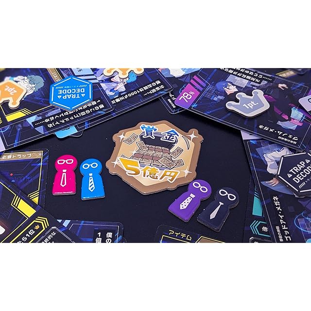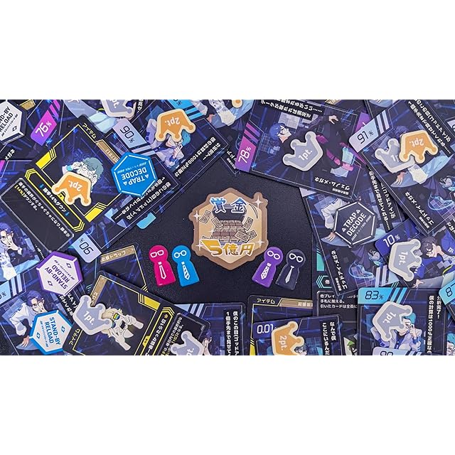 《セット内容》 ◆カード (合計 74枚) └選手カード 34枚 └チートカード 24枚 └種目カード 12枚 └ガイドカード 4枚 ◆チップ ・タイル (合計 25ヶ) └プレイヤーチップ 4ヶ └スタンバイリロードチップ 4ヶ └トラップ解除チップ 4ヶ └王冠チップ 12ヶ └タイムリミットゲージ 1ヶ └タイムリミットマーカー 1ヶ └賞金5億円タイル 1ヶ