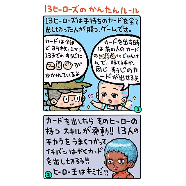 カードを使ったじゃんけんをしながら手持ちのカードを減らしていく新感覚バトルカードゲームが爆誕! カードを出すたびにヒーローの力が発動! 友達の数だけ闘い方がある!何度やっても楽しめるシンプルで奥深い新感覚のカードゲームです!