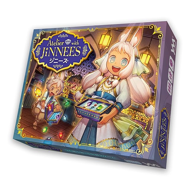 やのまん 宝石細工師の工房経営ゲーム [アトリエ・ウィズ・ジニーズ] プレイ人数:2~4名 ゲームデザイン:吉池真一(Gemini Games) イラスト:里瀬ほとり/kawakami