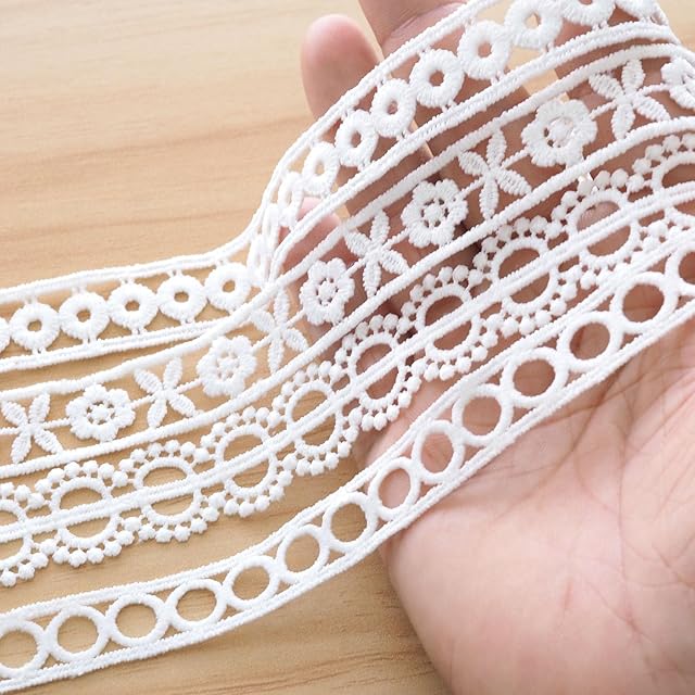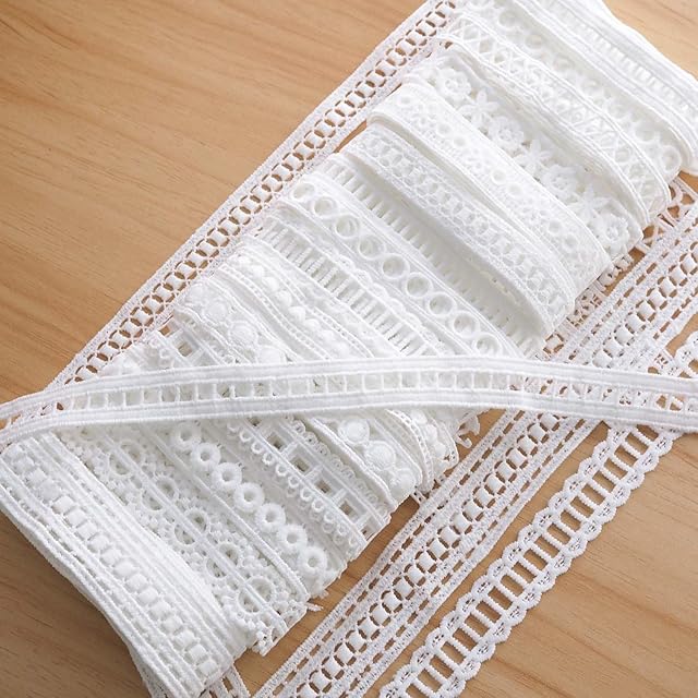 Hymyily 15m(15種類)非常に狭いシンメトリー柄のレース生地 髪飾り刺繍レース 裁縫・DIY手作り·装飾材料·祝日の休日の贈り物の装飾(ホワイト)