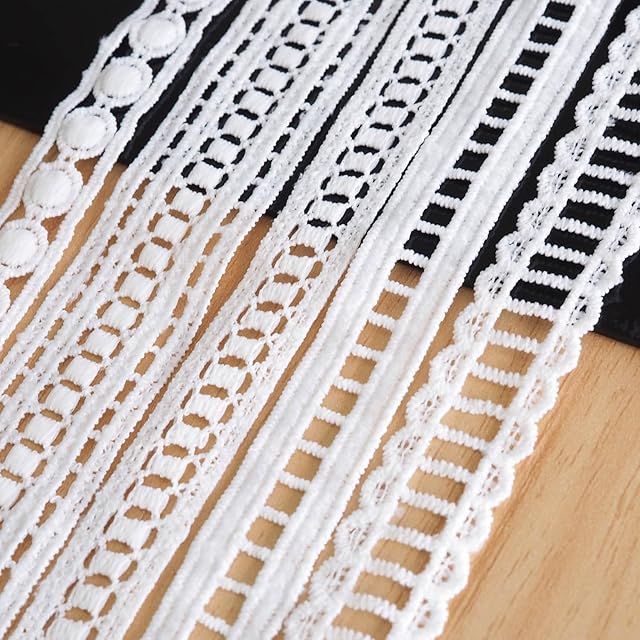 これは15種類の極端に狭いレース生地で構成されたセットで、長さは1 m、長さは15 mです。デザインが豊富で、長さが十分で、さまざまなDIYプロジェクトの制作を満たすことができます。