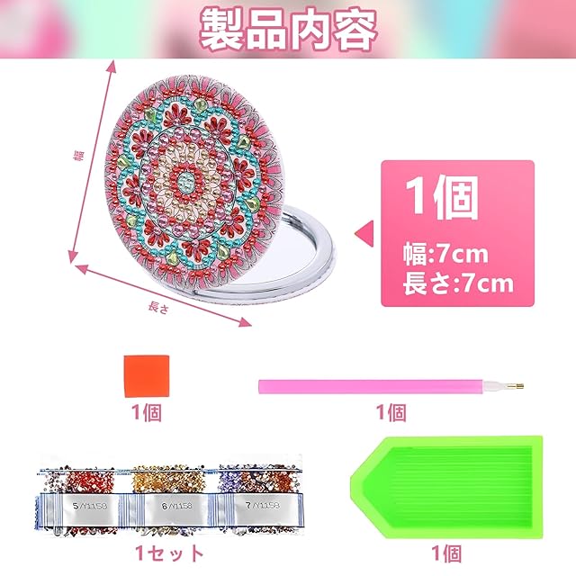 商品名:ダイヤモンドアート キット ダイヤモンドペインティング 丸型両面鏡 DIY 化粧鏡 手芸キット 3D キラキラ DIY可能 ペインティング 手作りアートクラフト用品 大人 子供 初心者 人気 手作り 誕生日 クリスマス プレゼント