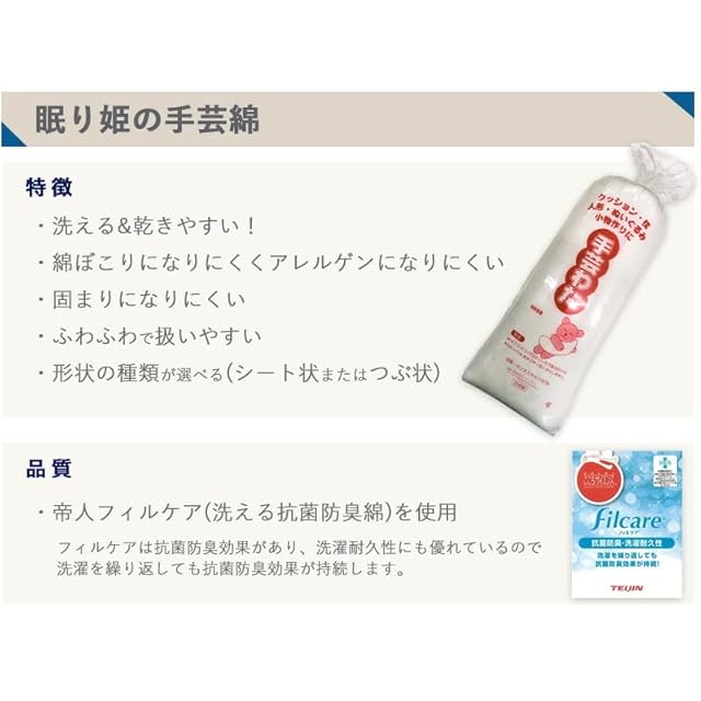 手芸わた 300g×2個 600g 洗える綿 つぶ状 ポリエステル綿 手芸綿 ハンドメイド 羊毛フェルト ぬいぐるみ 眠り姫 日本製