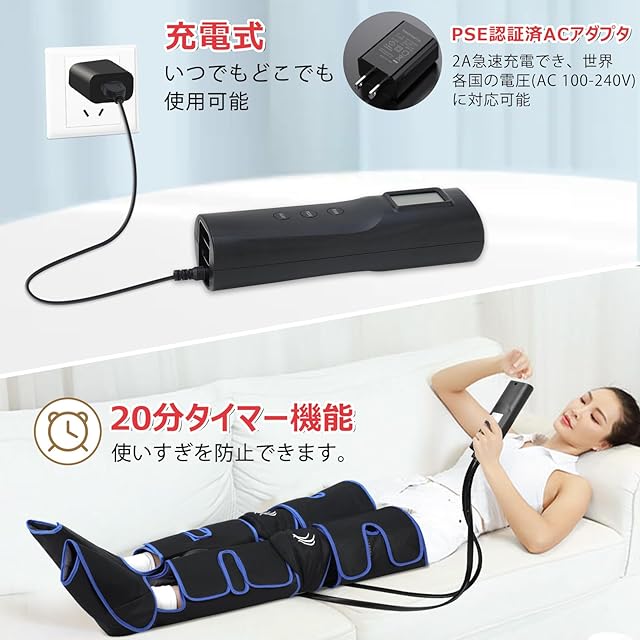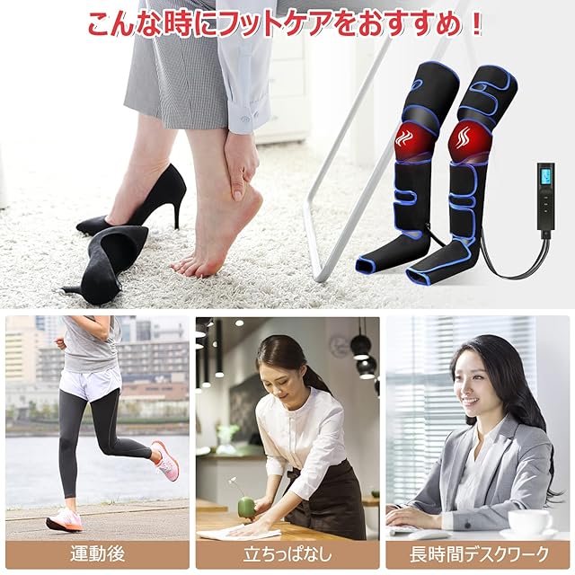 商品名:Gurkitsy【充電式】フットケア 3段階膝温感 足 トレーニング ふくらはぎ 太もも対応 6コース 3段階強度 リモコン付 20分タイマー自動OFF 装着型 折り畳み可能 お手入れ 収納簡単 コードレス 足裏ケア 家庭用 男女兼用 日本語取扱説明書
