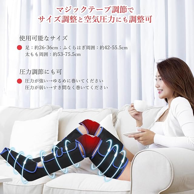【男女兼用 使用できる脚のサイズ】マジックテープでサイズ調節することができます。足部位約26~36cm、ふくらはぎ約42~55.5cm 、太もも約53~75.5cm、男女に問わず家族全員使用可能です。装着式でコンパクトに折り畳んで収納することもできます。内側の生地が肌にやさしくて、通気性もよい、さらに汚れにくい素材で作られるので、毎日使っても清潔に保てます。