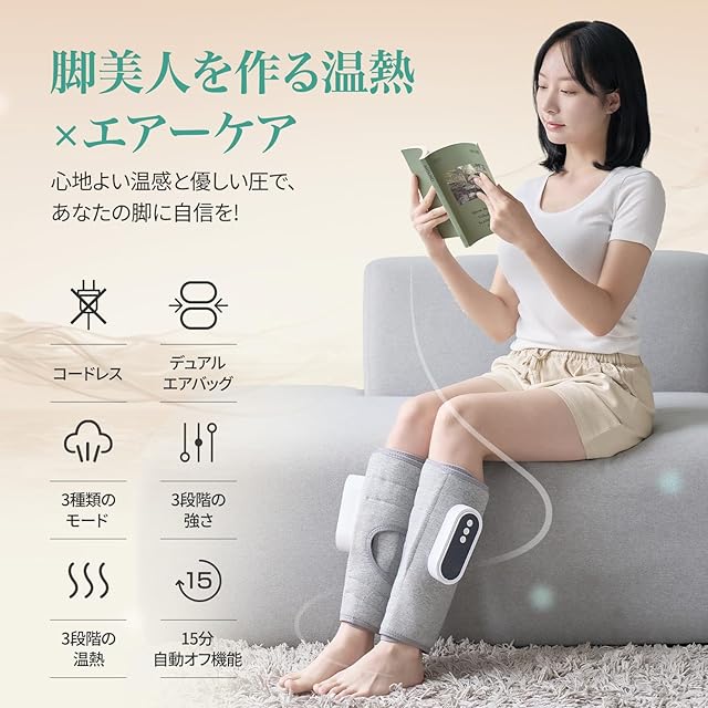 商品名:【ふくらはぎケア】エアーレッグ ふくらはぎ リラックス 足ケア 空気圧+温熱 3モード×3強度×3温度調節 コードレス USB充電式 360°包み込みケア サイズ調整可 15分自動オフ 約150分連続使用 男女兼用 運動後/立ち仕事/座り仕事に 父の日 母の日 敬老の日 誕生日 プレゼント(両足セット)