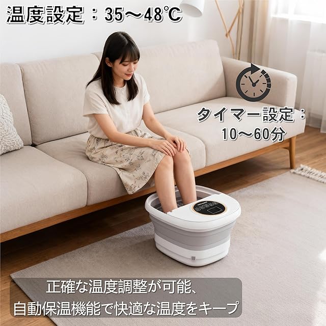 【タイマー自動停止機能】10~60分の間で設定でき、過加熱を防止。お休み前の足湯タイムにも安 心です。