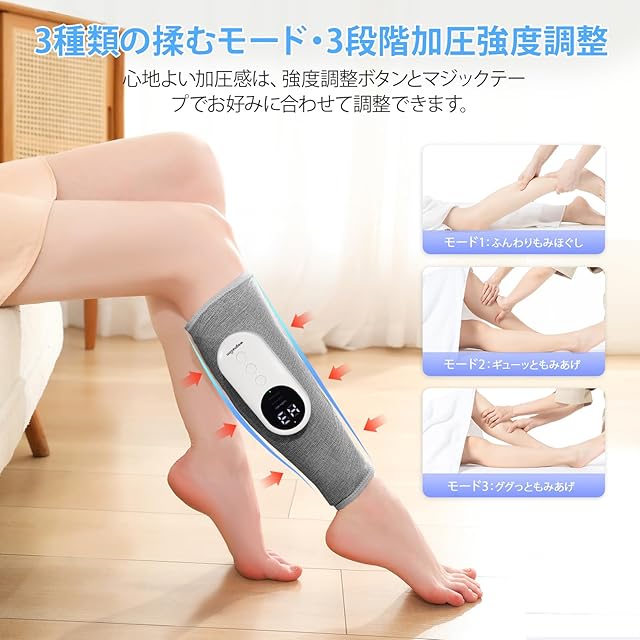 【3種類加圧モード・3段階強さ調節】:その日の疲れに合わせて選べる3モード×3段階の強度調節で、ぴったりの快適さが簡単に見つかります。操作パネルのLED表示で、現在のモードがすぐにわかります。ボタン一つで簡単操作でき、様々なニーズに対応。初回使用時は弱めの1段階から始め、慣れてきたら強度を調整してください。