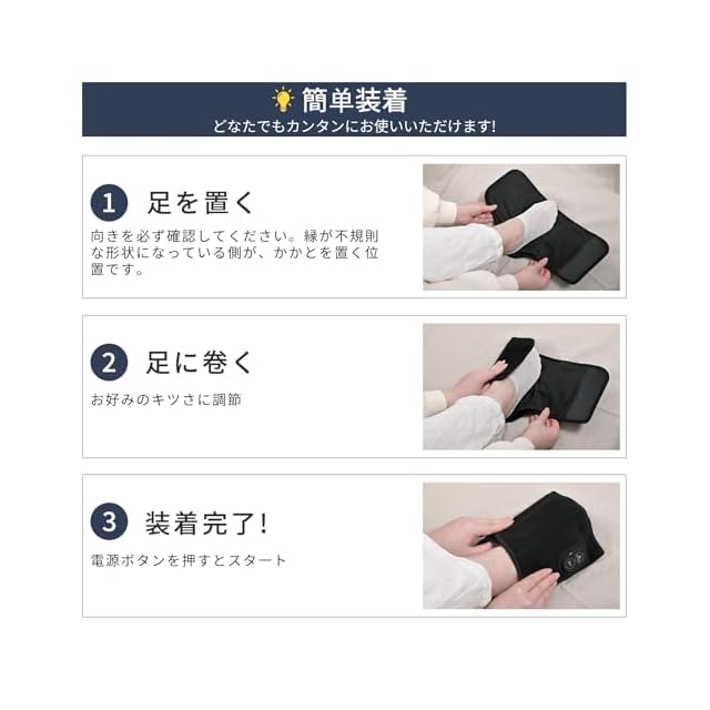【簡単な操作】面ファスナーだから足に巻くだけの簡単装着。だれでも簡単に使えます。