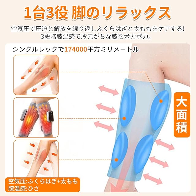 商品名:2025新登場!ふくらはぎケア レッグケア ふくらはぎリラックス 加熱 空気圧3モード 3段階強度 3段階温度 フットケア 太もも 足ケア 操作簡単 サイズ幅調整可 コードレスUSB充電式 家庭用 男女兼用 誕生日 クリスマス プレゼント 敬老日 ギフト 母の日 父の日 日本語取扱説明書付き (M, 1, 枚)