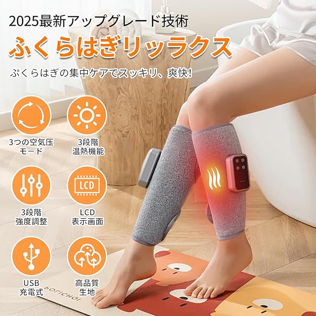 ふくらはぎケア +空気圧+ ふくらはぎリッラクス 太もも 足ケア コードレスUSB充電式 3モード 3段階強度 3段階温度 男女兼用