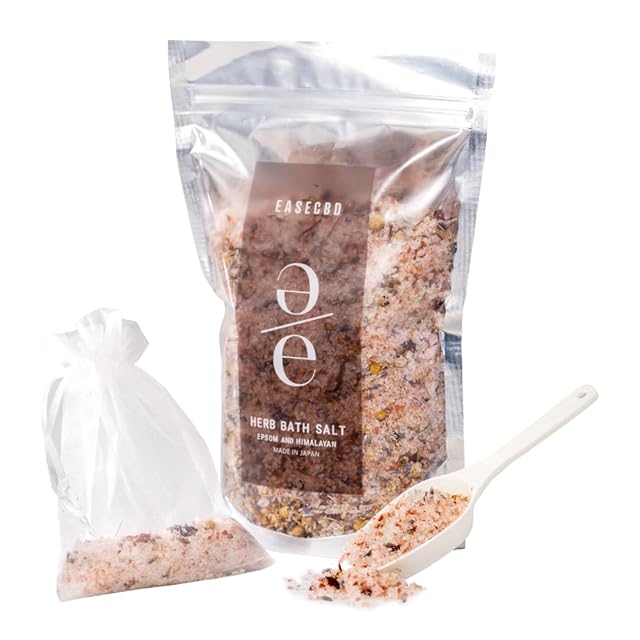 EASECBD バスソルト ドライハーブ ラベンダー ジャーマンカモミール ローズヒップ ギフト プレゼント お風呂 入浴 アロマ 専用巾着付 250g 400g 600g エプソムソルト ヒマラヤ岩塩 詰め替え用 (400, ウォームバスソルト)