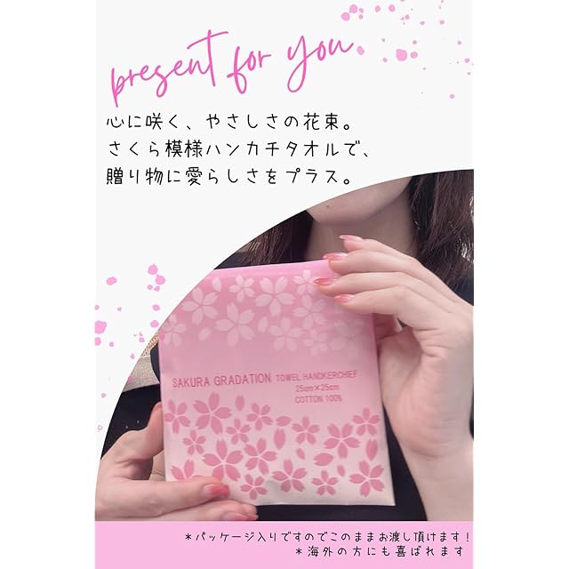 今治タオル パッケージ入り ハンカチタオル SAGURA サクラグラデーション 25cm×25cm プチギフト 【プレゼントに最適】 さくら柄 日本製 お祝い 返礼品 桜 ピンク 優しい肌触り 春 さくら模様 さくら柄 綿100% コットン100% かわいい 通勤用 通学用 通園用