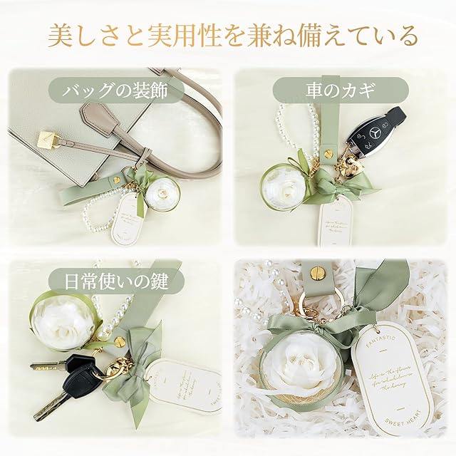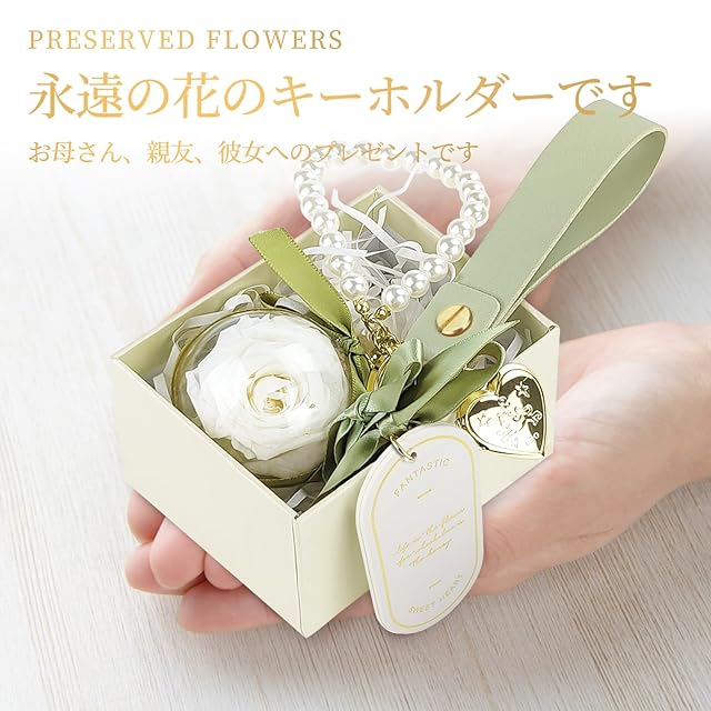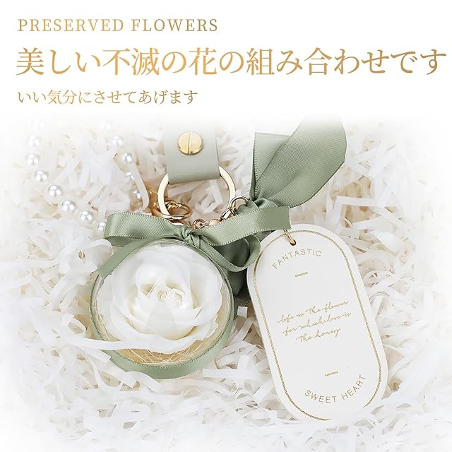 【プリザーブドフラワー 人気ギフトランキング】クリスマスに純白のバラのキーホルダーを贈って、純粋な愛を伝えましょう。枯れないバラ花言葉:「熱烈で真の愛・勇敢な慕情・心からの感謝」20代、30代、40代、50代、60代の女性に人気のギフト。記念日、バレンタインデー、ホワイトデー、プロポーズ、告白、結婚式、入学式、卒業式、誕生日、母の日、引越し祝い 、残暑見舞い 、お盆、敬老の日、クリスマス、退職祝い などに素敵でロマンチックな贈り物として、バッグチャーム、女性は美しいバラを断ることができません。