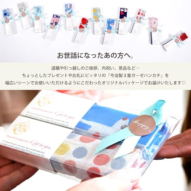 "今治タオルハンカチ Pocchi~<br> <br> ポケットやかばんに入れやすい薄手でサラッとしたハンカチ。<br> 3枚合わせのハンカチなので薄手なのに<br> シッカリとした吸収力と丈夫で柔らかな 風合いが魅力的。<br> タオルの産地として名高い今治で織り上げられました。<br> <br> 【商品詳細】<br> ハンカチサイズ:約25x25cm<br> 素材:綿 100%<br> 生産地:日本(今治)<br> 箱サイズ:約15×4×2cm<br> <br> <b>用途</b> ハンカチ ポケットハンカチ 贈り物 プレゼント 出産祝い 快気祝い 結婚祝い 入学祝い 新築祝い お中元 お歳暮 お年賀 内祝い お祝い プレゼント 母の日 敬老の日 婚礼 結婚式 ブライダル 出産 ノベルティ 記念品 粗品 ゴルフコンペ 来場記念 成約記念 贈り物 お礼 お返し 挨拶 景品 など<br> <br> <br> ※掲載画像がパソコンやモニターの環境により、実物商品と多少色の違いが生じる事がございますが、ご了承お願い申し上げます。"