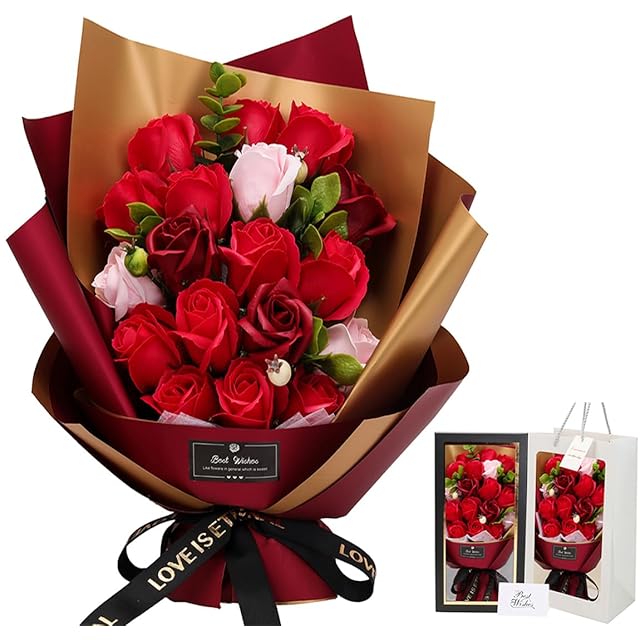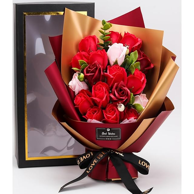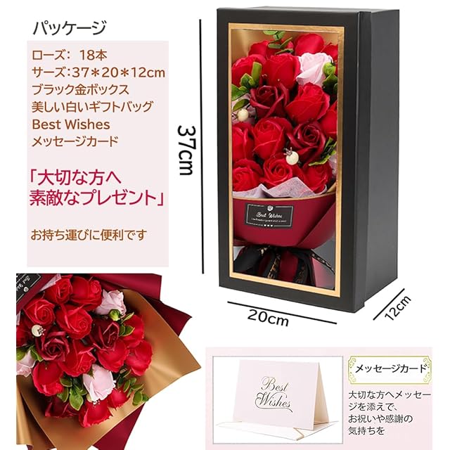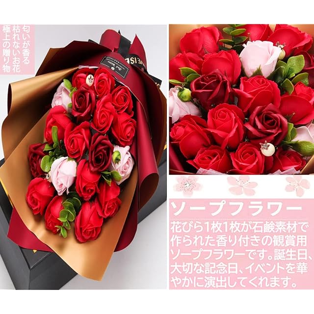 商品名:ソープフラワー花束 母の日プレゼント,誕生日プレゼント ソープフラワー バラ グラデーション ローズブーケ 薔薇造花 プレゼント女性人気ギフト 結婚記念日 父の日 敬老の日 彼女 感謝 お礼 インテリア バラ花束赤