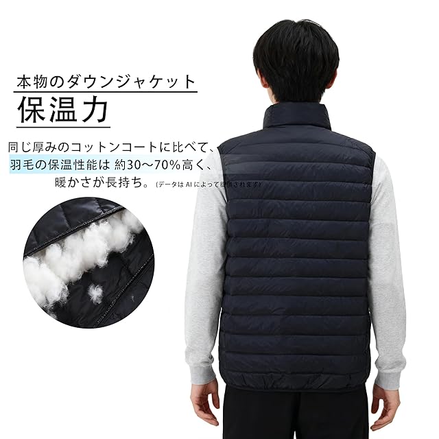 優れた保温力:同じ厚みの綿ジャケットに比べて、羽毛の保温性能は 約30~70%高く、暖かさが長持ち。