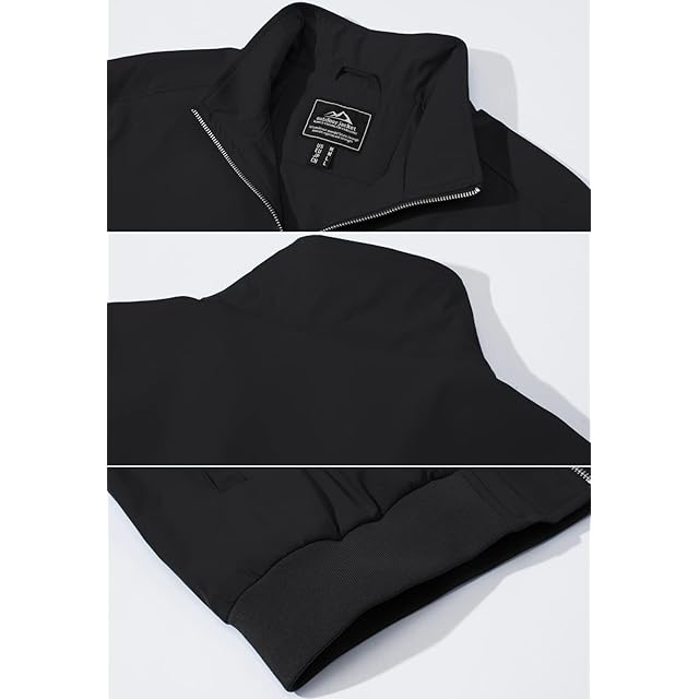 商品名:[TACVASEN] ジャケット メンズ 秋 仕事着 防風 アウター バイク アウトドア 撥水 軽量 シンプル 無地 カジュアル ジャンパー 登山 スタジャン ブラック L
