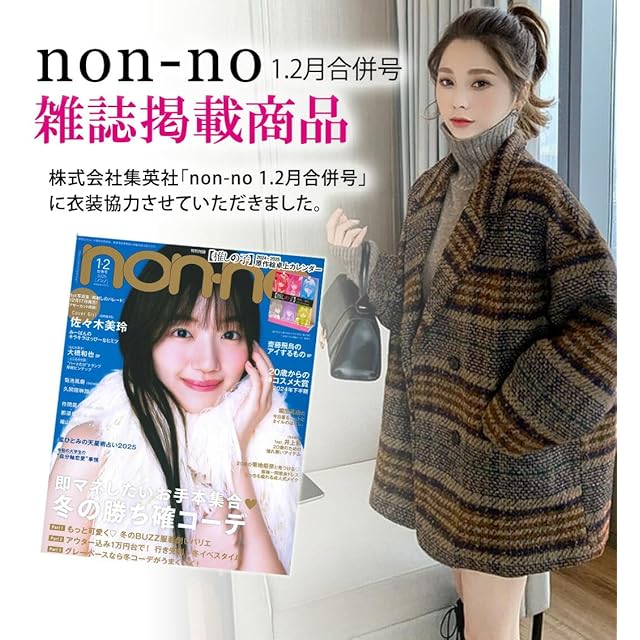 \【株式会社集英社『non-no1.2月合併号』】に衣装協力しました/レディース コート ルーズシルエットShortCoat<br> オーバーシルエットが今っぽい<br> チェックショートコート<br> ”ちょっぴりレトロな雰囲気”<br> チェックショートコート<br> ルーズなシルエットで腰まわりをすっぽり隠せる丈感が◎<br> いろんなアイテムと相性よく合わせやすいデザイン<br> 【商品詳細】<br> ・生地の厚さ:中厚手<br> ・伸縮性:なし<br> ・透け感:なし<br> ・裏地:あり<br>