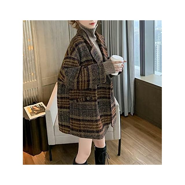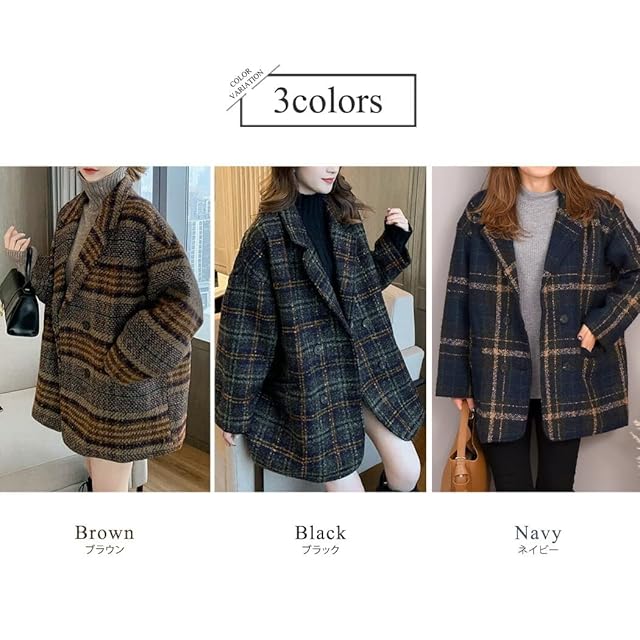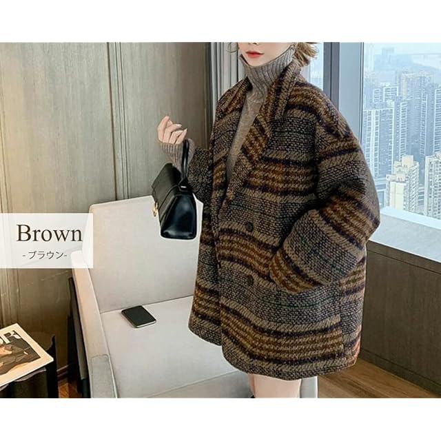 商品名:[Teddy] コート レディース アウター 中厚手 オーバーサイズ ゆったり 秋冬 防寒 グレンチェック柄 tops1353 (ブラウン, M)