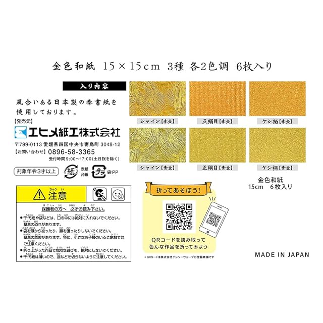商品名:エヒメ紙工 折り紙 金色和紙 10冊パック NGW-2015-10P