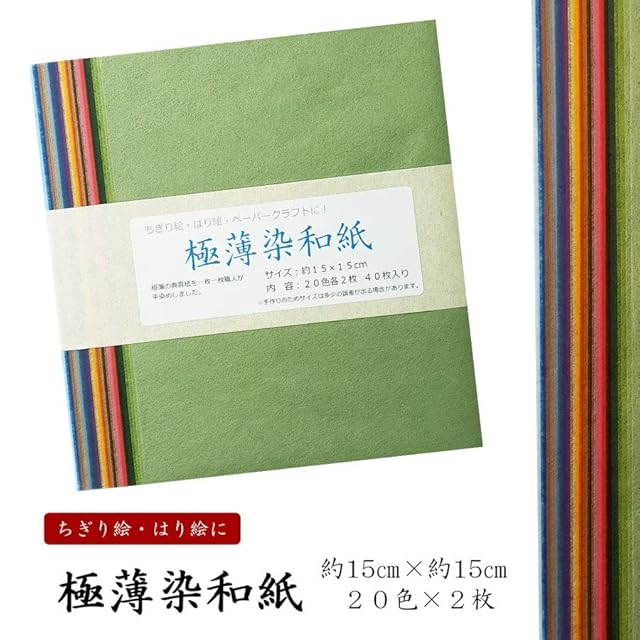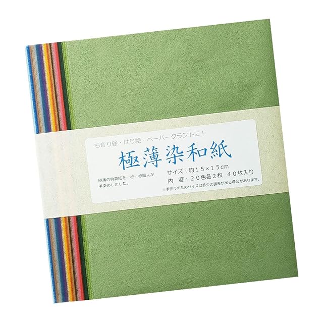 <p>寸 法:約15センチ×15センチ <br> 内 容:40枚入(20色×2枚入) <br> <br> 商品説明:極薄の典具紙を一枚一枚職人が手染めしました。 <br> <br> ※手作りのためサイズは多少の誤差がございます。ご了承くださいませ。</p><BR>