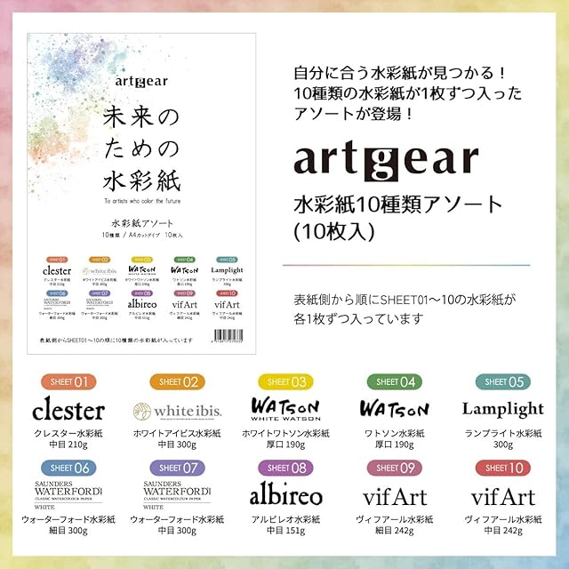 artgear 未来のための水彩紙 A4 10枚 10種アソートセット (agp100)