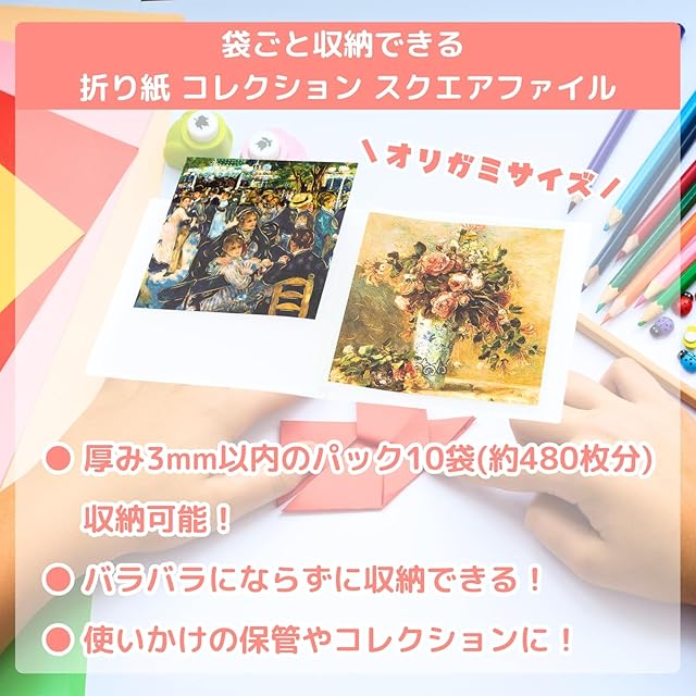 スクエアファイル 折り紙 デザインペーパー整理用 袋ごと収納OK A4より小さい紙専用 見せるコレクション収納 (2)