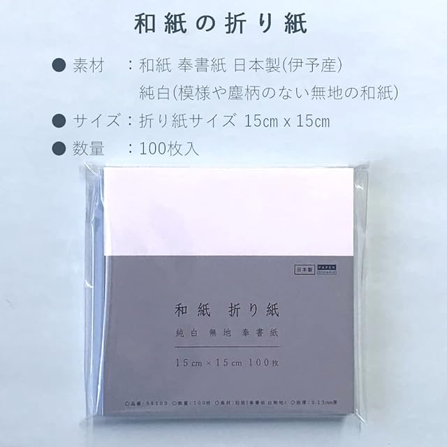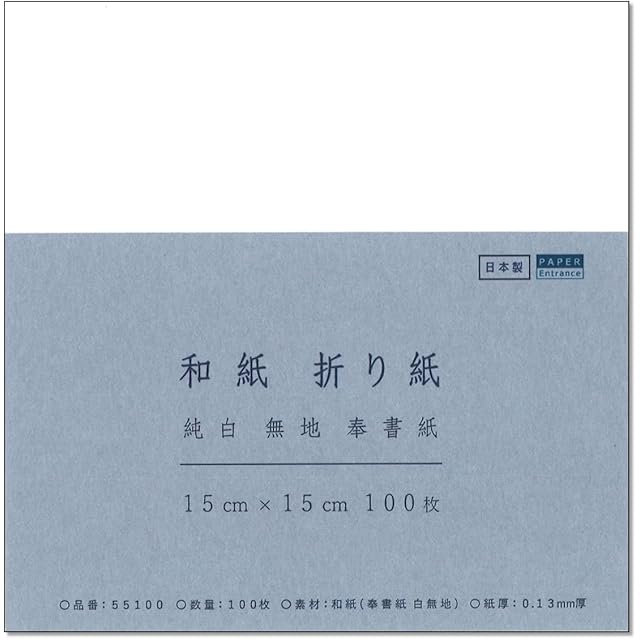 商品名:ペーパーエントランス 和紙 折り紙 奉書紙 白 15×15cm 100枚 伊予産 懐紙 工作 便箋 御朱印 用紙 55100