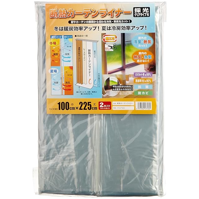 商品名:明和グラビア 冷気を防ぐ 窓 冷暖房効率UP カーテン 省エネ 節電 採光 UVカット 取り付け簡単 クリア 半透明 断熱カーテンライナー 100cm×225cm 2枚入