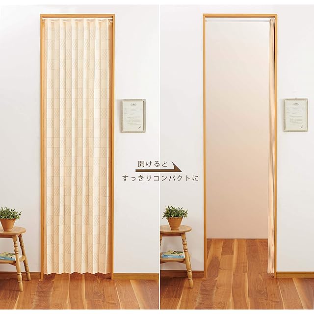 商品名:松本商事 カーテン アイボリー 約幅100×高さ250cm フリーカットアコーディオンロング間仕切り 114091